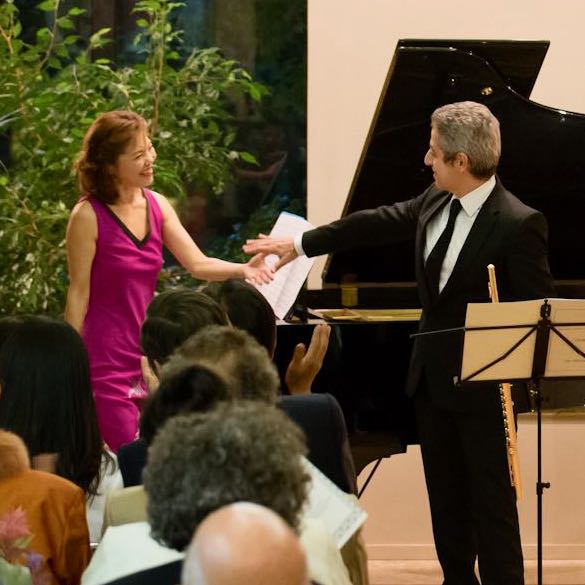 This year, 2025, our wonderful regular musiciens – tow flutists Carol Wincenc (Professor of Juilliard School) and Michel Moragues (Soliste of l’Orchestre National de France, Professor of Chamber Music at C.N.S.M. de Paris) and a pianist Jean-Marc Luisada – they will be joining us for Masterclasses and Concerts. They are, needless to say, a wonderful musician who is active all over the world, and are my old friends since my days in Paris.
